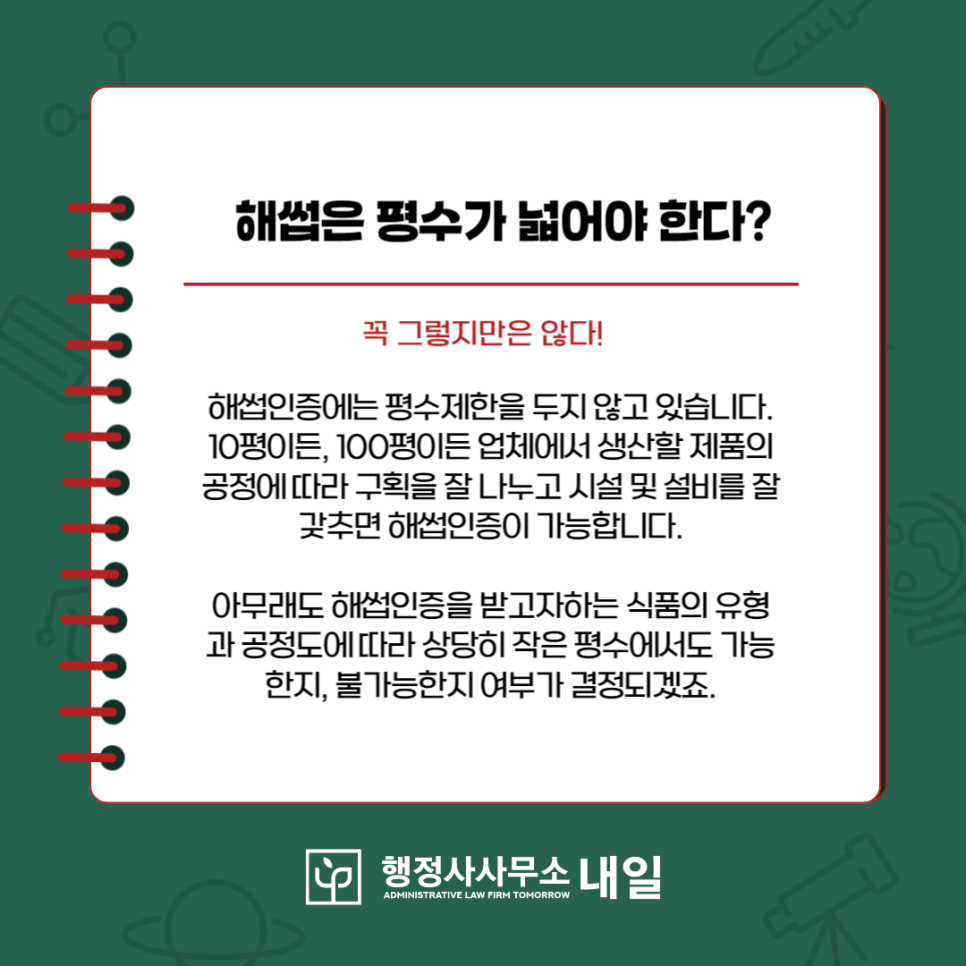 해썹인증, 10평이하 작은 평수에서도 가능할까?
