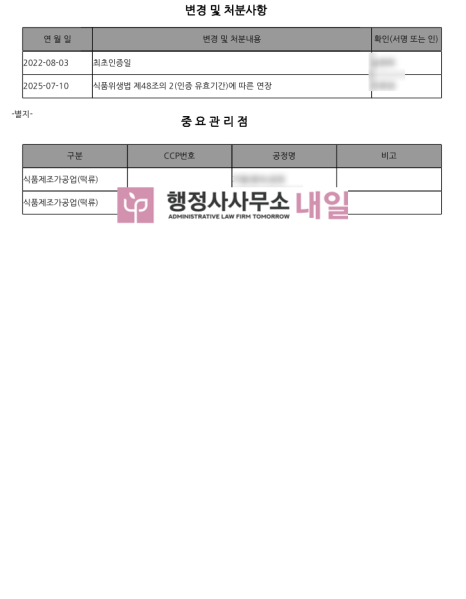 최초 해썹인증 또는 연장심사를 준비 중이시라면 전문가와 함께 진행하시는 것을 추천드립니다.