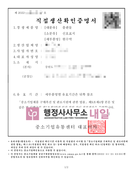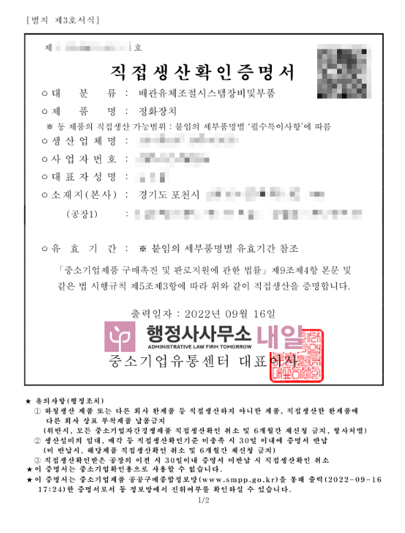 고로.. 직접생산확인증명서를 발급받기 위해서는