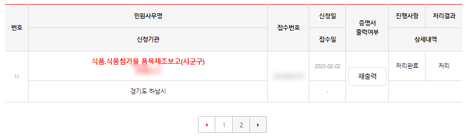 식품안전나라를 통해 품목제조보고 신청을 하였답니다.