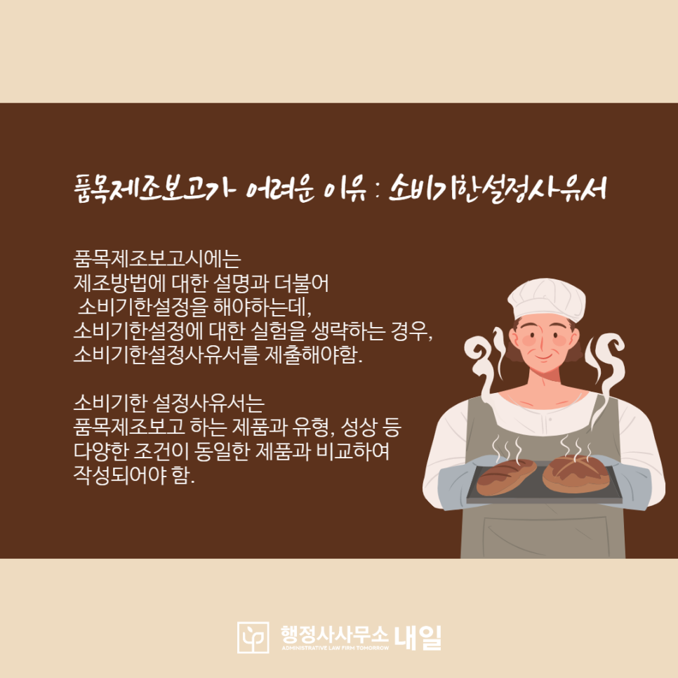 그런데 품목제조보고를 하는 과정에서 유통기한설정사유서 작성이 어려우시다고 내일행정사를 찾아주셨어요.