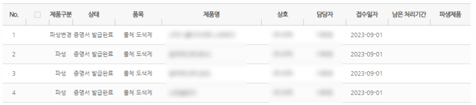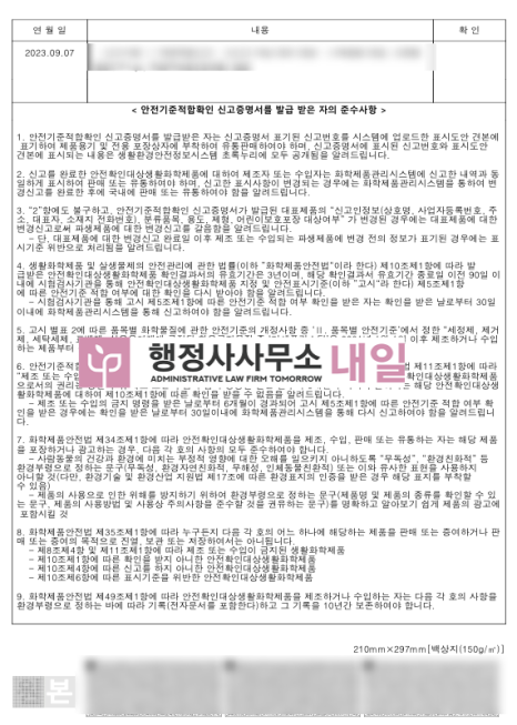 이번에 내일행정사에 생활화학제품 변경신고와 파생신고를 의뢰주신 업체는