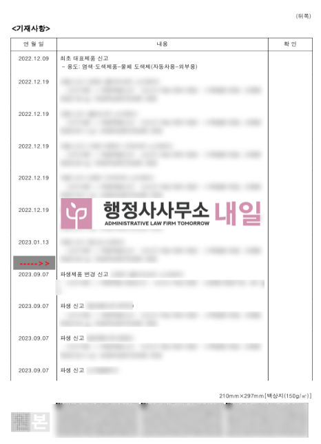 생활화학제품 : 물체도색제 변경신고, 파생신고 사례
